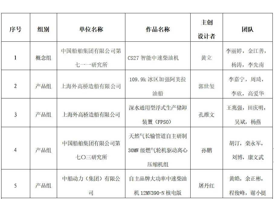 在大會的工業設計和工藝技術比賽環節,中國船舶集團第七一一研究所的CS27智能中速柴油機,中國船舶集團旗下外高橋造船的109.9k冰區加強阿芙拉油船、深水通用型浮式生產儲卸裝置(FPSO),中國船舶集團第七〇三研究所的天然氣長輸管道自主研制30MW級燃氣輪機驅動離心壓縮機組,中國船舶集團旗下中船動力的自主品牌大功率中速柴油機12MV390-N核電版在國防郵電產業2021“長纓杯”工業設計大賽中獲獎;中國船舶集團旗下滬東中華的23000TEU雙燃料大型集裝箱船關鍵工藝技術研究,中國船舶集團第七一六研究所的船舶管系柔性制造及管控技術研究與應用,外高橋造船的大型豪華郵輪薄板分段翻身工藝研究,中國船舶集團第七一三研究所的高性能長壽命圓弧螺紋錨桿組件在國防郵電產業首屆工藝技術創新大賽中獲獎。