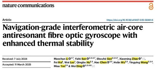 這一成果標志著我們在空芯光纖陀螺技術領域實現從理論創新到工程應用研究的跨越,為慣性導航技術發展鐫刻下鮮明的印記。