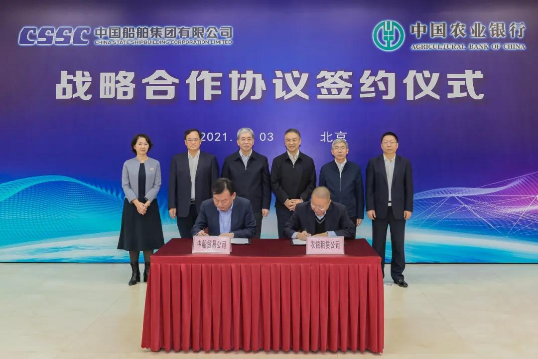 會上,在雙方領(lǐng)導(dǎo)的共同見證下,中國船舶集團旗下中船貿(mào)易與農(nóng)業(yè)銀行農(nóng)銀租賃簽署相關(guān)合作協(xié)議。