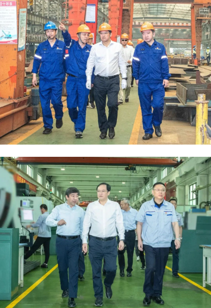 在武昌造船,楊金成深入生產(chǎn)一線詳細了解情況,并聽取了武昌造船關于生產(chǎn)經(jīng)營和未來發(fā)展規(guī)劃的匯報。在東儀科工,楊金成前往生產(chǎn)車間調(diào)研產(chǎn)品生產(chǎn)情況,并聽取了七〇五所/中船華雷及東儀科工關于生產(chǎn)經(jīng)營及發(fā)展規(guī)劃的匯報。
