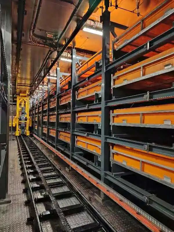 # 巖心庫內部配置了船載巖心庫自動倉儲系統,實現了巖心托盤的自動存??;