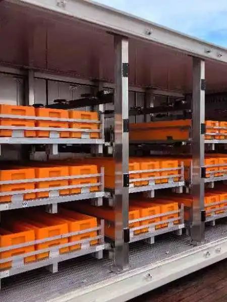 # 露天甲配置了船載巖心集裝箱自動裝載系統,能夠在集裝箱和電梯之間自動轉移托盤;