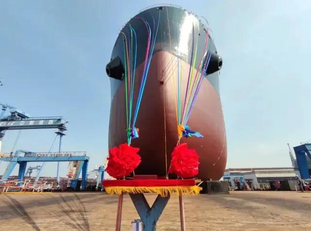 ???上午9點,中船澄西為交銀租賃建造的22號8.2萬噸散貨船順利下水,該船是中船澄西復工復產以來建造下水的第四艘新船。該型船為第三代卡爾薩姆型散貨船,總長229 米,型寬32.26米,設計吃水12.2米,載重8.12萬噸,滿足無限航區航行要求。