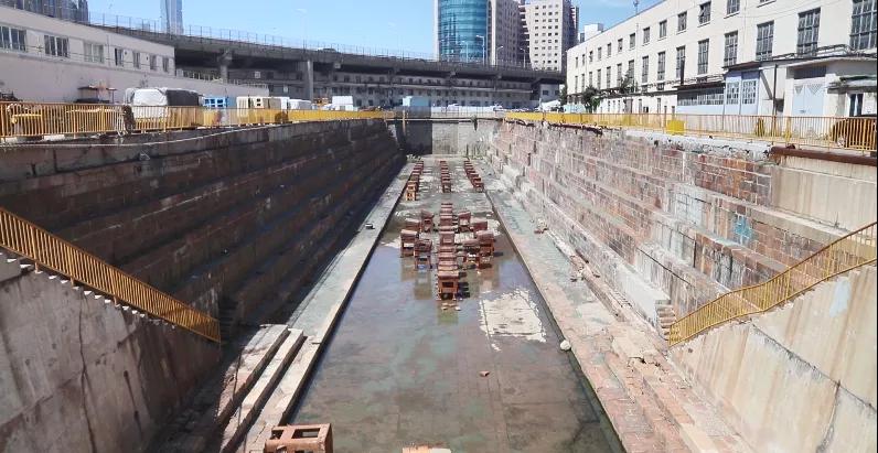 修船南塢始建于1899年,1902年底初建完工,長116米、寬13米、深7.6米,采用兩開式扉門,并配備電動排水泵。