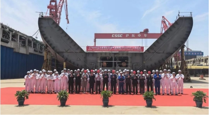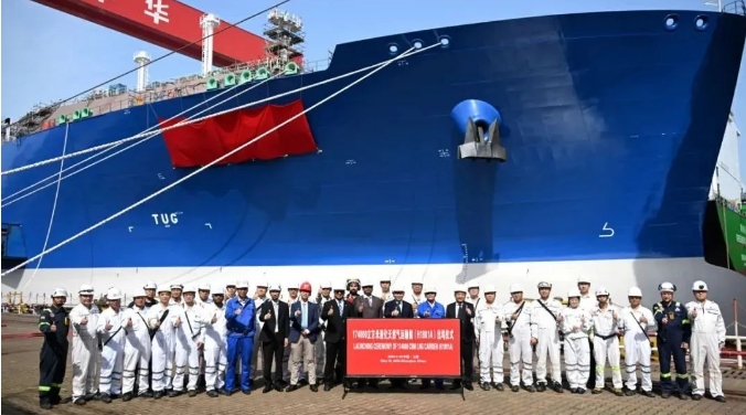 17.4萬(wàn)立方米LNG運(yùn)輸船“遠(yuǎn)海奮進(jìn)”號(hào)(Ocean Inspiration)在滬東中華新廠區(qū)正式命名。