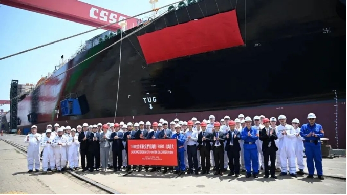 △中海油項(xiàng)目17.4萬(wàn)立方米LNG運(yùn)輸船H1884A船出塢