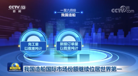 7月17日,央視《新聞聯播》對我國造船國際市場份額繼續位居世界第一進行了報道。數據顯示,一至六月份,我國造船完工量、新接訂單量、手持訂單量,以載重噸計分別占世界總量的45.2%、50.8%和47.8%,國際市場份額繼續位居世界第一。 | 來 源:央視《新聞聯播》 | 責 編:方 浩 | 校 對:高紅梅 | 審 核:項 麗/甘豐錄