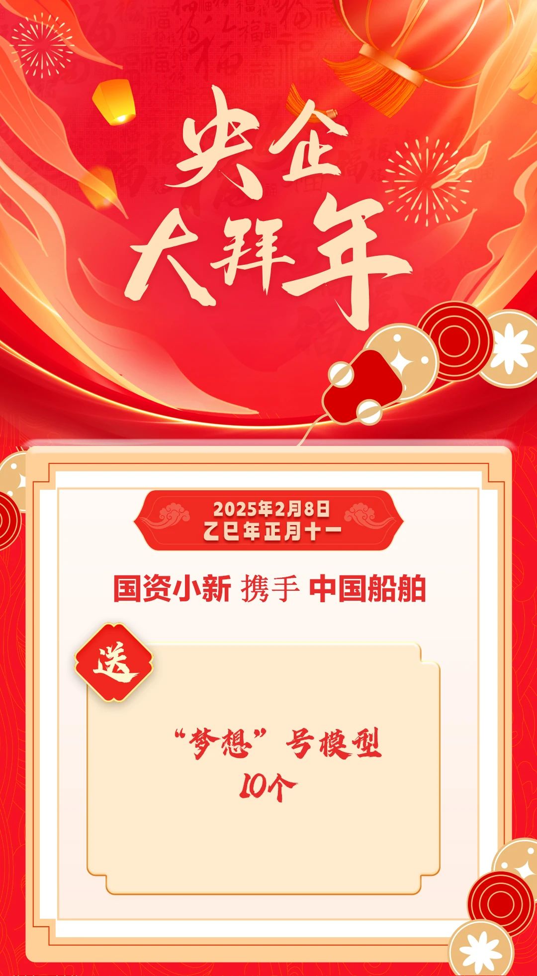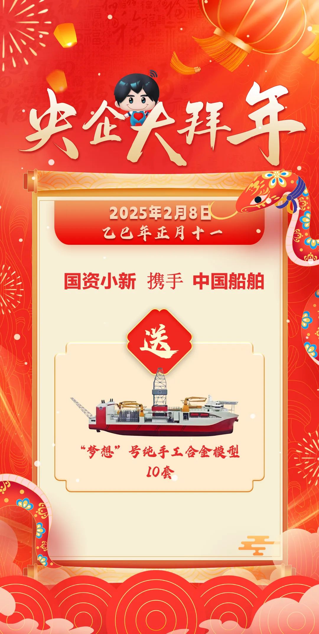 今天“國資小新”聯(lián)合中國船舶抽取10位幸運粉絲,送上“夢想”號純手工合金模型。