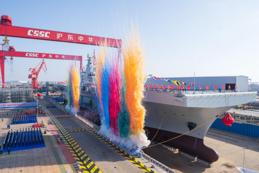 我國第三艘航空母艦福建艦,從中船集團(tuán)旗下江南造船碼頭解纜起航,目前已按計劃開展多次航行試驗。
