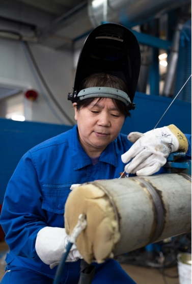 至今,朱瑞霞已經(jīng)參與了“遠(yuǎn)望”系列船、“雪龍2”號、南昌艦等國家重點項目的焊接工作。她說,當(dāng)時有人高度評價稱:“你焊的管子可以免檢。”但壓力也隨之而來,“我當(dāng)時就想,船一出海就是半年,我的焊接要是出問題,就是人命關(guān)天。”正是因為這種“軸”,朱瑞霞先后攻克了鎳銅管焊接變形、HDR不銹鋼焊接、鈦合金焊接等一系列高難度問題。她主導(dǎo)研發(fā)了十余項焊接專利技術(shù),攻克了薄壁管道焊接難題,還創(chuàng)新研制了特有的工裝,獲得外國專家的認(rèn)可和推廣應(yīng)用。